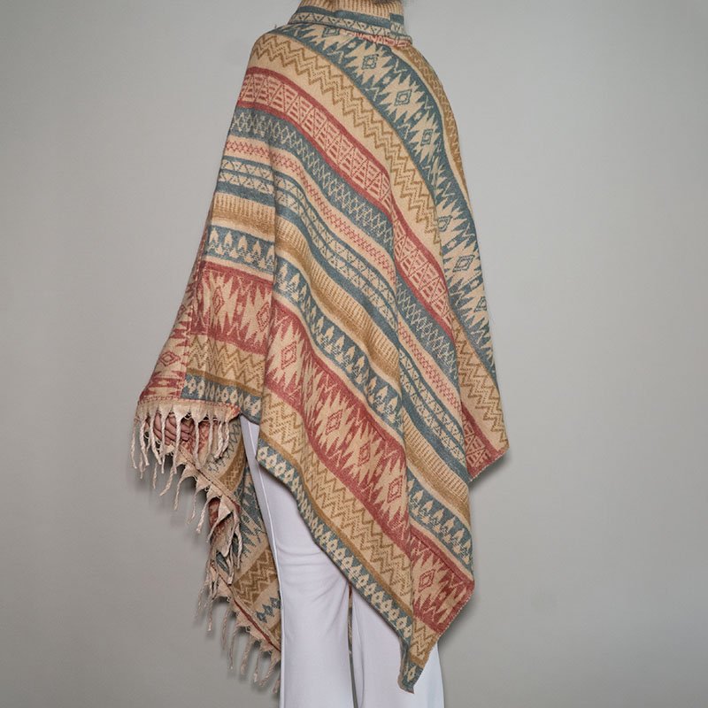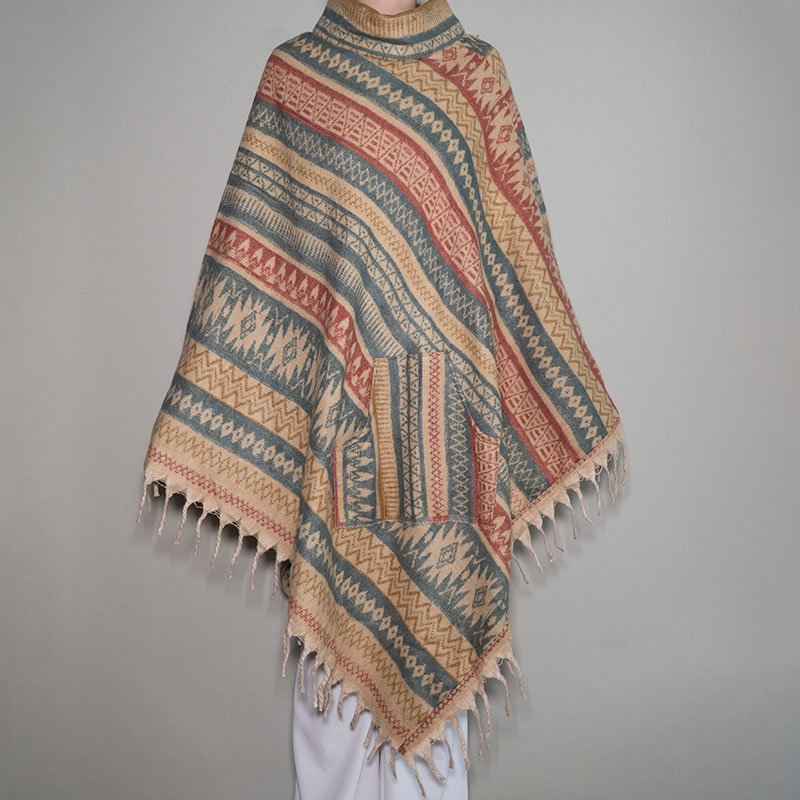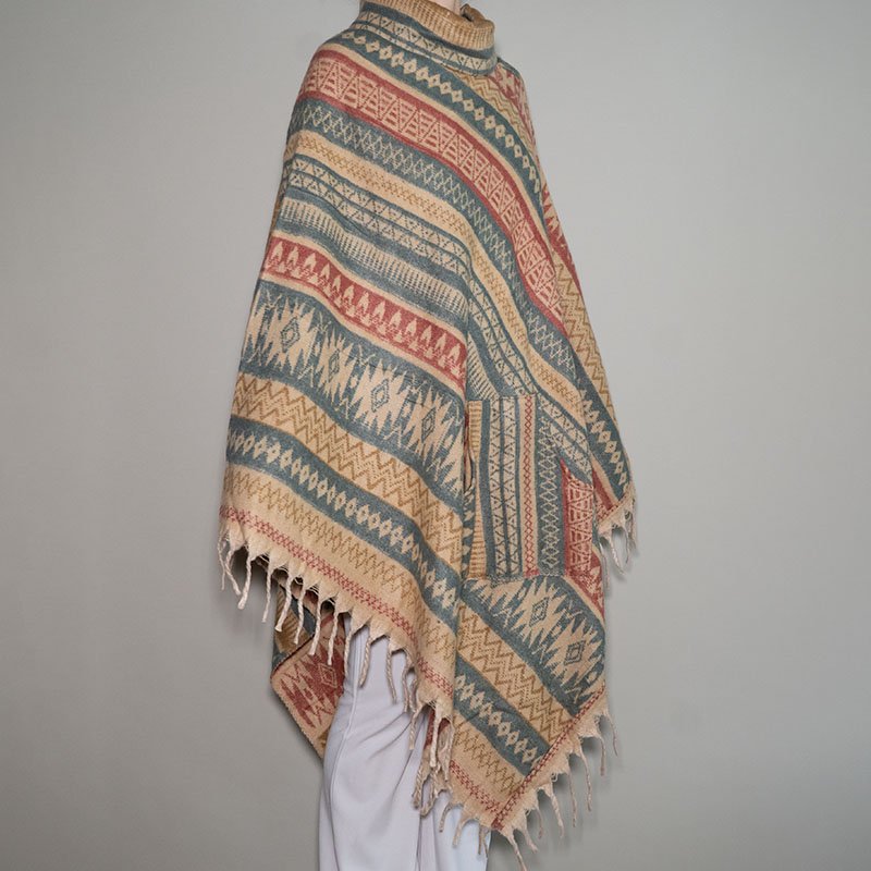Dizainas: unikalus, įvairiaspalvis raštas – kiekvienas pončas turi savitą spalvų derinį, todėl kiekvienas gaminys yra vienintelis ir nepakartojamas.