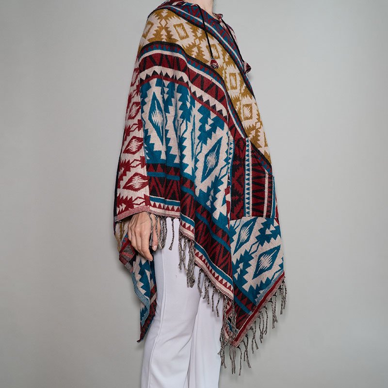 Dizainas: unikalus, įvairiaspalvis raštas – kiekvienas pončas turi savitą spalvų derinį, todėl kiekvienas gaminys yra vienintelis ir nepakartojamas.