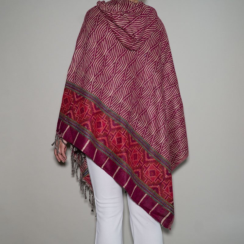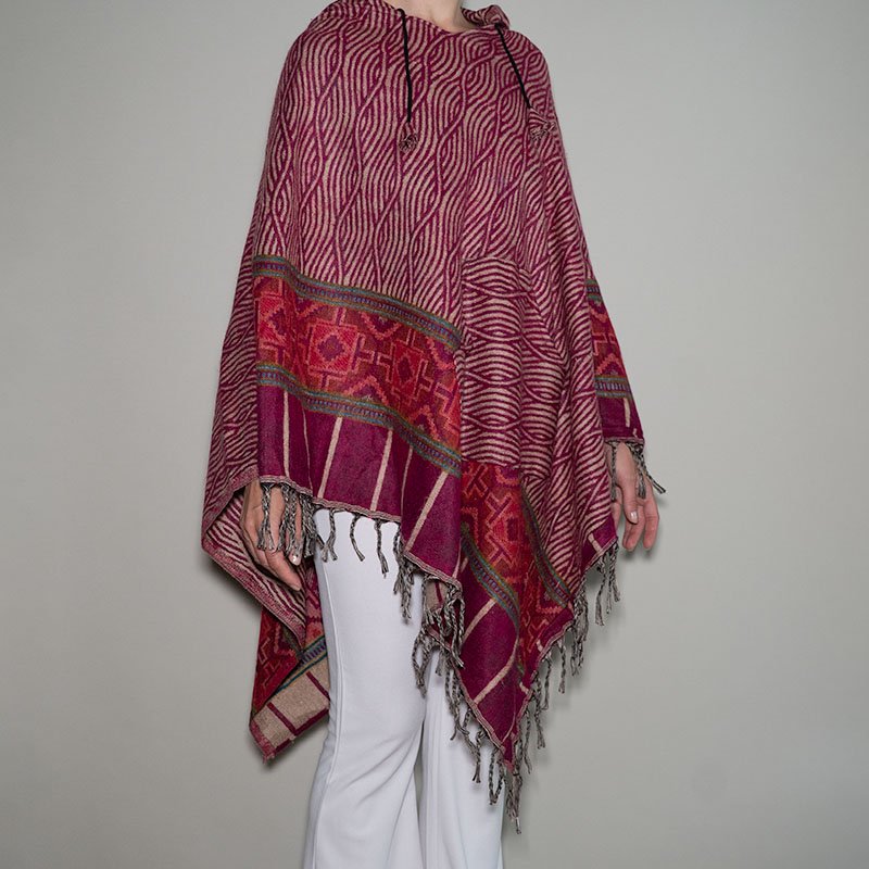 Dizainas: unikalus, įvairiaspalvis raštas – kiekvienas pončas turi savitą spalvų derinį, todėl kiekvienas gaminys yra vienintelis ir nepakartojamas.