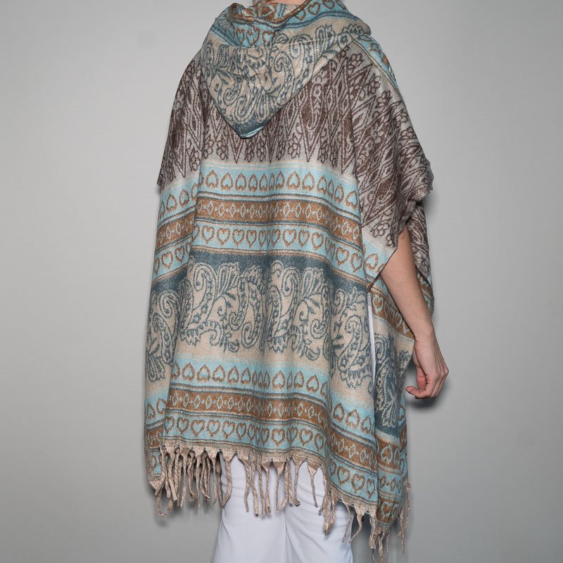 Dizainas: unikalus, įvairiaspalvis raštas – kiekvienas pončas turi savitą spalvų derinį, todėl kiekvienas gaminys yra vienintelis ir nepakartojamas.