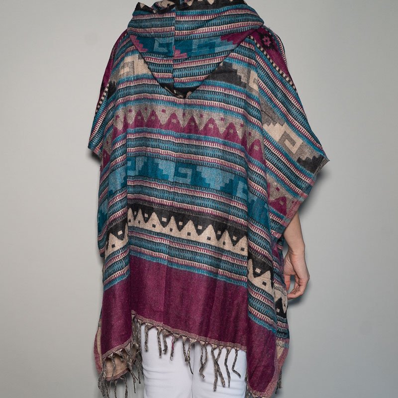 Dizainas: unikalus, įvairiaspalvis raštas – kiekvienas pončas turi savitą spalvų derinį, todėl kiekvienas gaminys yra vienintelis ir nepakartojamas.