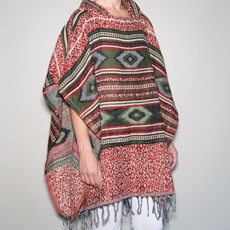 Dizainas: unikalus, įvairiaspalvis raštas – kiekvienas pončas turi savitą spalvų derinį, todėl kiekvienas gaminys yra vienintelis ir nepakartojamas.