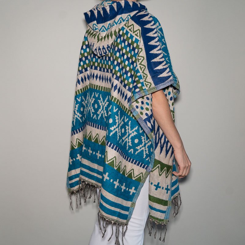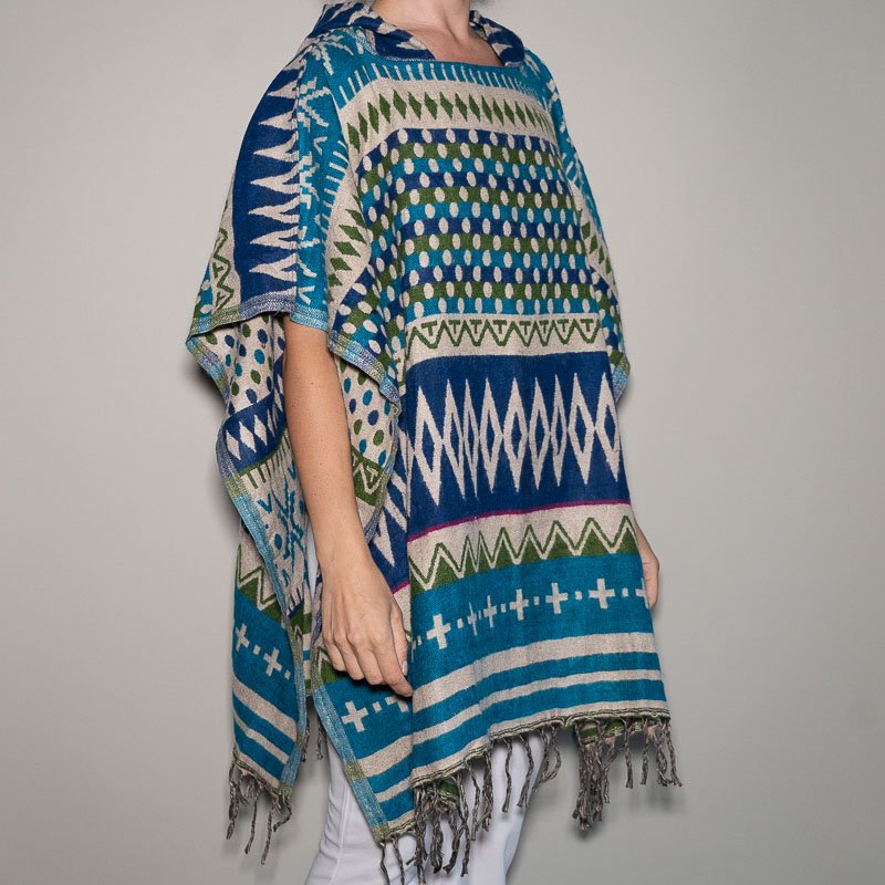 Dizainas: unikalus, įvairiaspalvis raštas – kiekvienas pončas turi savitą spalvų derinį, todėl kiekvienas gaminys yra vienintelis ir nepakartojamas.